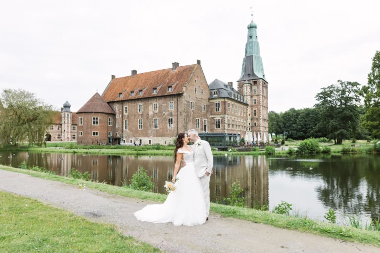 Vanessa und Simon leben in Neuseeland und haben auch dort schon im kleinen Kreis standesamtlich geheiratet. Aber sie wollten ein rauschendes Fest mit allen feiern, die nicht nach Neuseeland kommen konnten. Eine freie Trauung auf Schloss Raesfeld, das war die Lösung um ihre Familien und Freunde teilhaben zu lassen. Sogar die Familie von Simon hat die weite Reise auf sich genommen, um ein Teil von diesem großartigen Tag sein zu können.